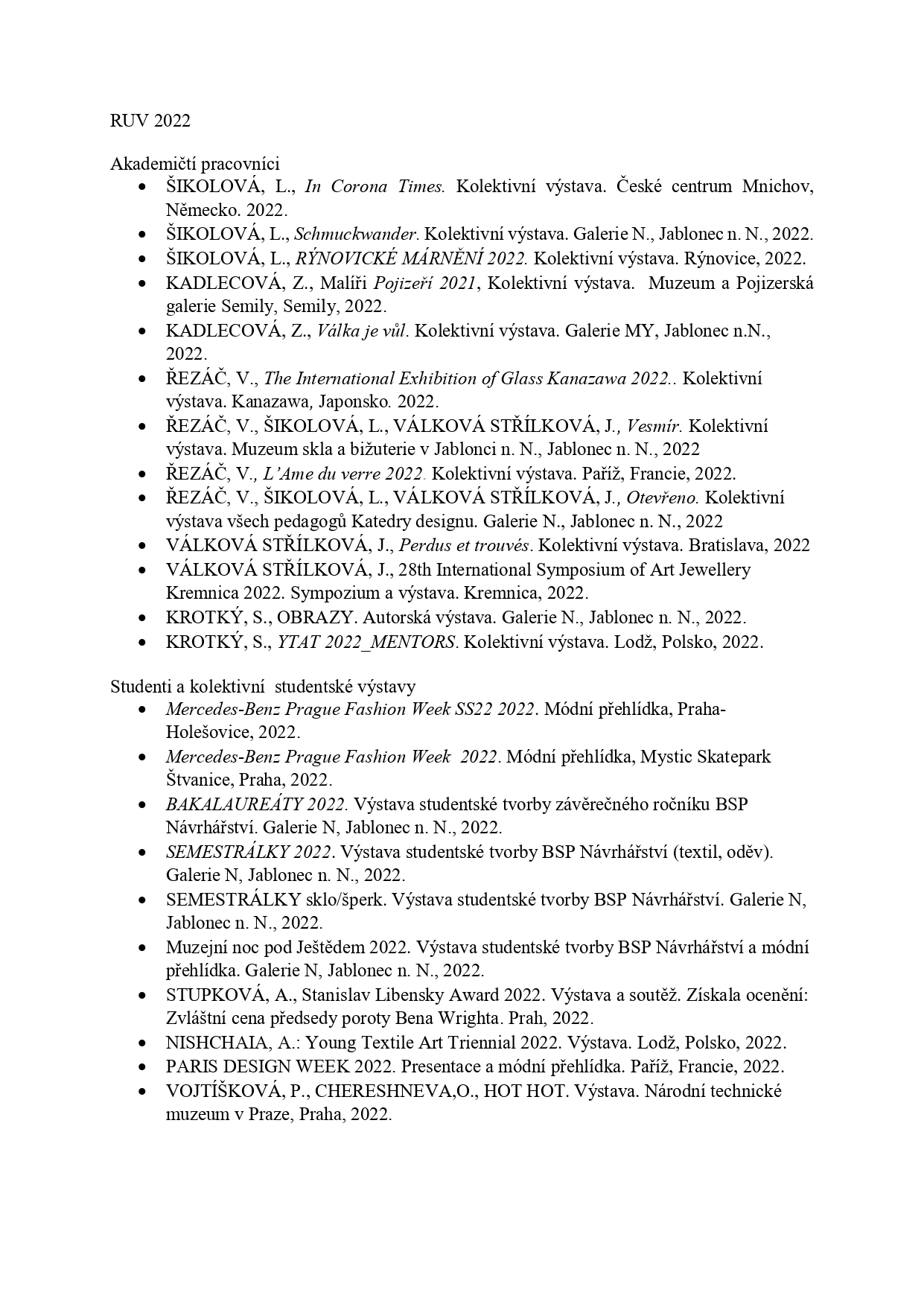 Výstavní a tvůrčí činnost (RUV) obrazová část