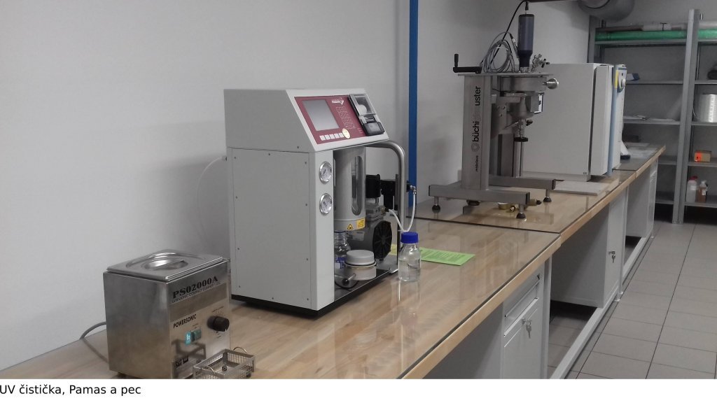 | Laboratorní pec | Laboratorní pec pro vytvrzování plošných vzorků (max. teplota 250°C). |