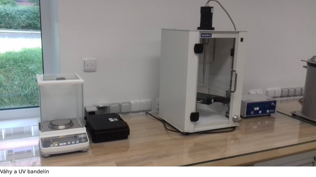 | UV homogenizátor, box Bandelin | 20kHz, určen k homogenizacím, emulgacím, dispergacím, k urychlení chemických reakcí, k odplynění roztoků. |