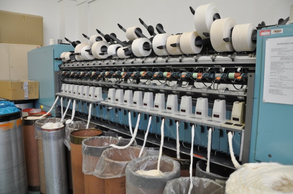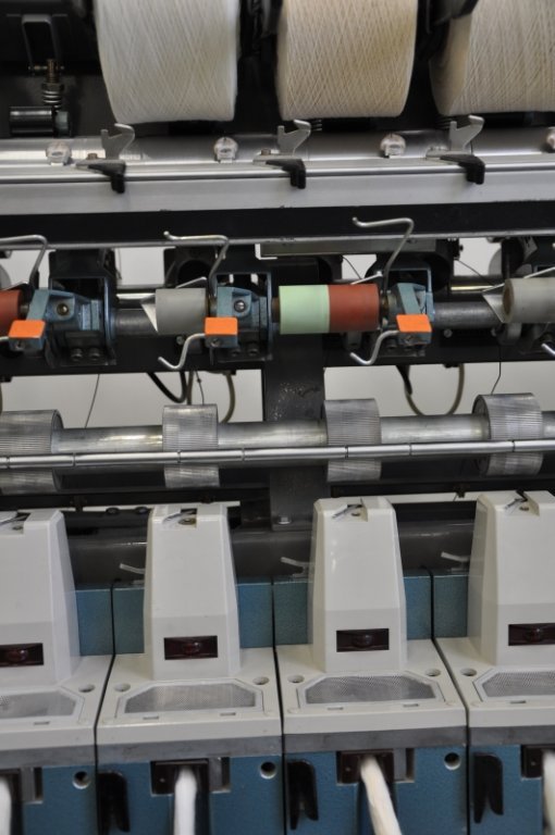 výstup: příze navinutá na válcových cívkách s křížovým vinutím (∅ 250 x 90 mm)