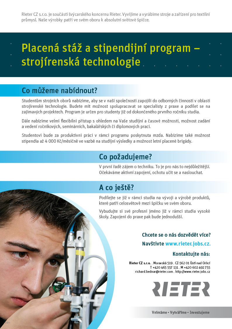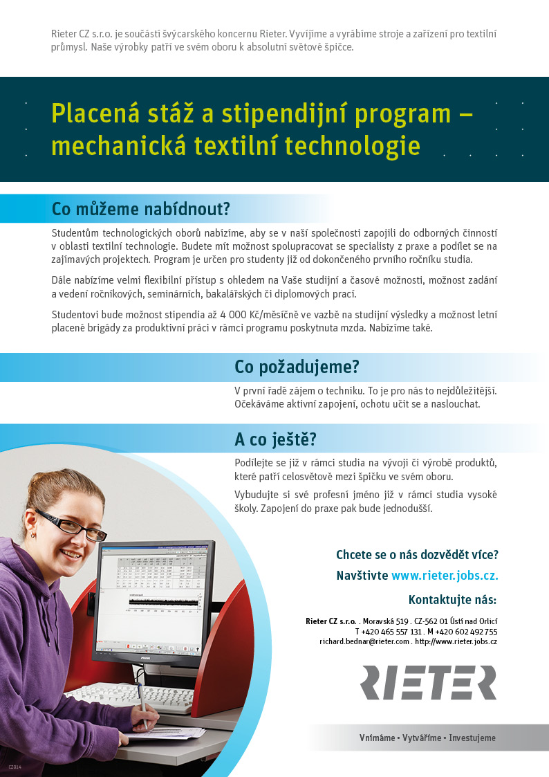 Na této stránce nabízíme prostor pro zveřejňování informací a inzerátů pro studenty týkající se nabídek praxí, stáží a zaměstnání. Bližší informace a podmínky zveřejnění na  lenka.nevyhostena@tul.cz